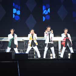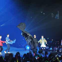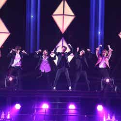 超特急はこの日が6人体制になって初のライブ。「バッタマン」「超えてアバンチュール」といったライブの人気曲から「Kiss Me Baby」から「バレンタインデーキッス」につなぐメドレーも。途中、バレンタインにちなんだ寸劇や、イベントのMCを務めるオリエンタルラジオの“武勇伝ネタ”を披露。超特急らしさ溢れるユニークな演出で盛り上げた。