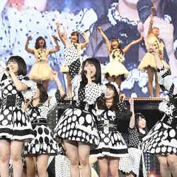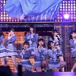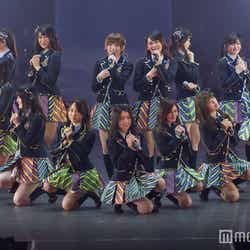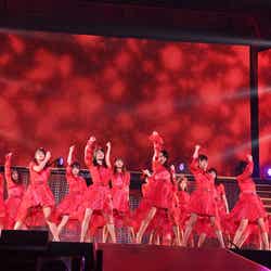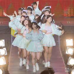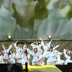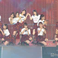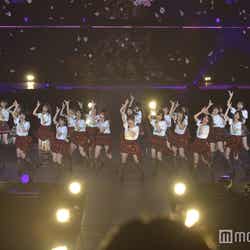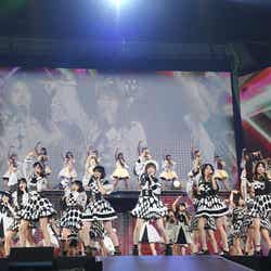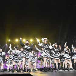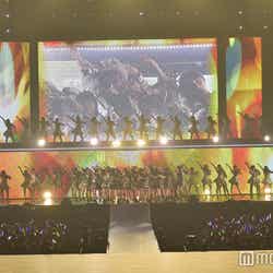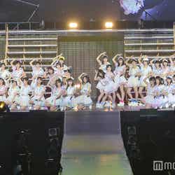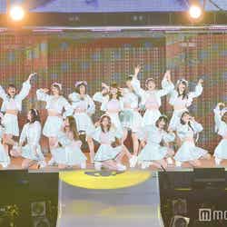 いきなりユニット楽曲という異例の始まりで会場が沸くと、全員がステージに現れ、岡田奈々センターで「フライングゲット」「希望的リフレイン」「ハイテンション」と盛り上がるナンバーで一気にボルテージを引き上げた。
