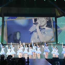 終盤の峯岸みなみ、大家志津香、宮崎美穂、小嶋真子のMCでは、大家が「照明がまぶしい!」と自虐で盛り上げると、ベテランメンバーに混じった小嶋は「私ここですか!?」とクレーム。「私はまだ皆さんババアと一緒にされたくないんです!ハタチですよ!」と噛み付くも、峯岸からは「髪がパサパサ」「楽屋でほぼ寝てる」など、若手らしからぬ素顔を指摘され、タジタジに。息の合った掛け合いで会場を笑いに包んだ。