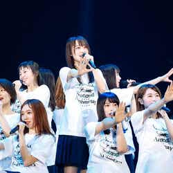そんな今泉の復帰を誰よりも待っていたのは、ユニット“ゆいちゃんず”としていくつもの楽曲を披露してきた小林だろう。ユニット曲『1行だけのエアメール』では、2人の思い出写真がスクリーンに映し出された。ユニットだけではなく、『ガラスを割れ!』でのWセンターも務め、今やグループを第一線で牽引する存在の今泉と小林。『ゼンマイ仕掛けの夢』では、色違いの花柄ワンピースの衣装でお揃いのアコースティックギターを弾き語り。時折顔を見合わせて笑う2人の表情からは、信頼や絆が感じられた。