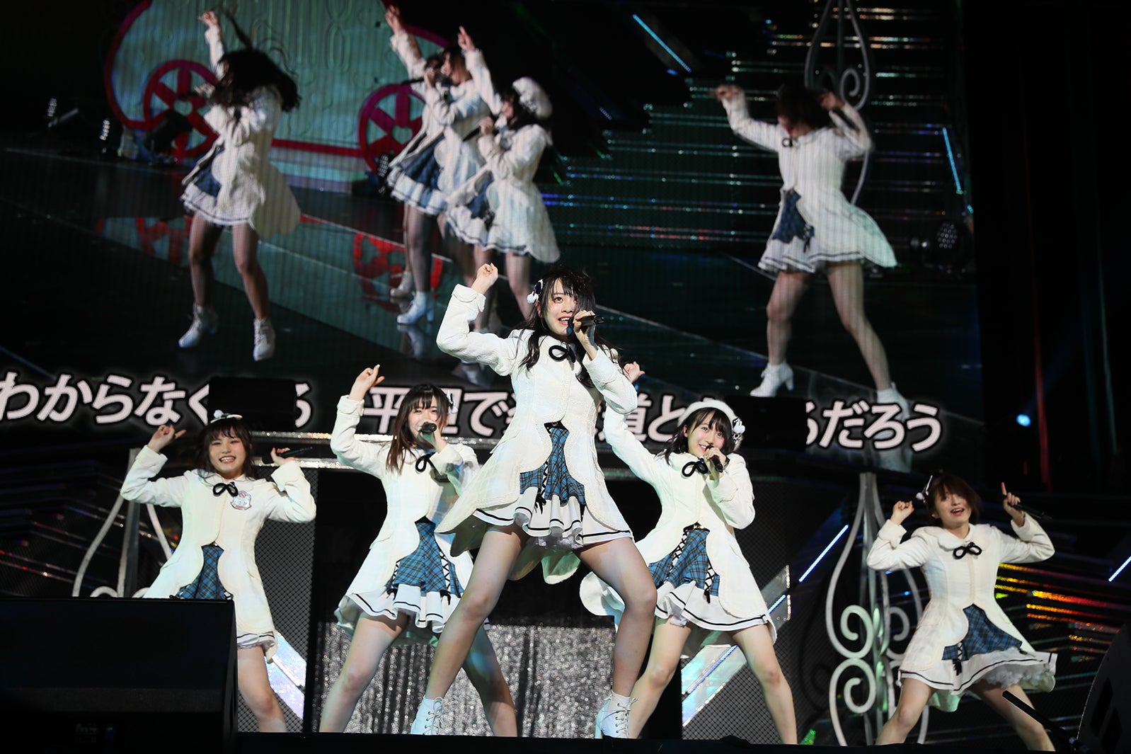 最後の1曲を残し、全国ツアー恒例でもある開催地代表歌田初夏へのお母様からのお手紙が読み上げられた。小さい頃から負けず嫌いだったことや、今も家族が寝静まった後に一人苦手なダンスの練習をしていることなどが書かれており、涙目の歌田は「遅刻しそうなとき、お母さんにスーツケースを持たせて先に走らせて私は自転車で後から追いかけるとか(会場爆笑)いつも迷惑ばかりかけてるけど、この活動を通していつか恩返しできたらいいなと思います」と独特ながらも感謝の気持ちを伝えた。