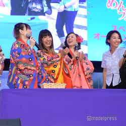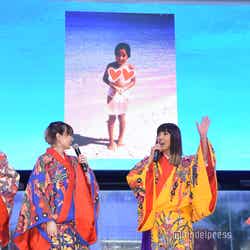 イベントには、沖縄県の伝統衣装である“琉装”を身にまとって登場。MINAは「趣味でちょこちょこ琉装を着る」というが、NANAは「結婚式ぶり」、LINAは「何回か番組で着させてもらった」と久しぶりに琉装に袖を通し、少しそわそわ。4人の琉装姿を見た具志堅は「美しい。これで新曲作ったらいいですね!」とうっとりだった。