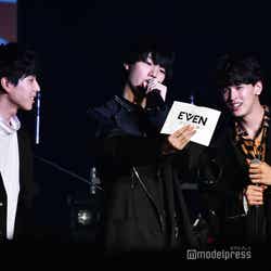 熱気に満ち溢れた会場で「今日、メジャーデビューですね!」(栗原)、「やっとメジャーデビューにこぎつけました!嬉しいですね、当日みなさんに会えるのは」(桜田)と喜びを語ると「おめでとう!」の声が飛んだ。「EVEN座談会」と題したトークコーナーは、映画撮影から一緒に過ごす5人だけにボケとツッコミも息ぴったり。「もし女性だったら誰と付き合う?」というお題で、桜田を指名した才川がその理由として「最近めっちゃ優しい。タクシーでバイバイする時も、ちゃんと後ろ向いて『バイバイ』って。女性がやられたら絶対惚れるよ!あと、毎回記念日においしい肉をごちそうしてくれる」と素顔を明かすと黄色い歓声。「あなたが最近デビューしたこと」については「ボクシングデビューしました。コージの実家のマンションの広場で臭いグローブつけてガチで殴り合う」(栗原)、「EVENの誰よりも先に通くん家に行った。週2回くらい!」(坂東)とメンバー同士の交流を明かす。