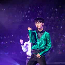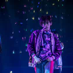 今回のツアーは会場の中央に設置されたステージで360度観客に囲まれた中で熱いパフォーマンスを披露。色気あふれる「Kiss Me Baby」でライブはスタートし「最終日、もっと声出していくぞー!」と声を張る。続けて、大サビをリョウガ、ユーキで歌唱した「Burn!」、リョウガによる「お楽しみはこれからだ」のイケボで始まった「Believe×Believe」など、ライブ序盤にふさわしいアップチューンを畳み掛け、8号車(超特急のファン)の熱を高めていった。