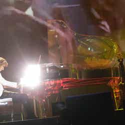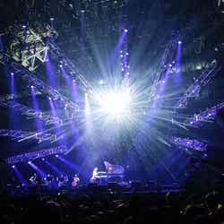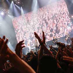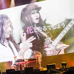歓声と共に幕を開けたステージは、“LUNA SEA”にちなみベートーベンの「MOONLIGHT SONATA(月光)」からスタート。すると、ピアノの余韻が残る中突如としてスクリーンには故・X JAPANのHIDEの姿が映し出される。映画「WE ARE X」と、HIDEの軌跡を追うドキュメンタリー映画「HURRY GO ROUND」の映像をバックに、未発表のボーカル音源だという「HURRY GO ROUND」のHIDEの音声との、奇跡のコラボパフォーマンスが実現。予想していなかったサプライズゲストの登場に会場からは驚きの声と共に涙を流すファンの姿も見られた。