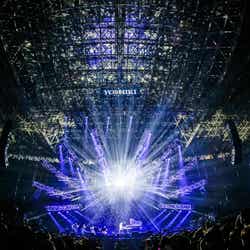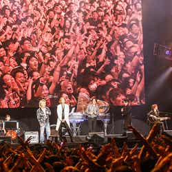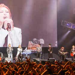 さらに「Say Anything」では、SUGIZO(LUNA SEA/X JAPAN)とTERU(GLAY)、「紅」では、RYUICHI(LUNA SEA)、そして「X」ではなんとSUGIZO、RYUICHI、TERU、逹瑯(MUCC)、ミヤ(MUCC)という豪華ゲストたちとのセッションが披露され、2万人を超える観客が大合唱とXジャンプで熱狂。MCの最中には、真矢(LUNA SEA)が、YOSHIKIのジョークに応えて“岡持ち”で自身のラーメンを差し入れるというまさかのサプライズで、観客は温かい雰囲気に包まれる場面もあるなど、YOSHIKI単独参戦のステージには続々アーティストが集結し観客は盛り上がりを見せた。