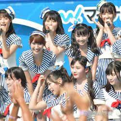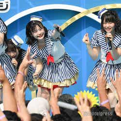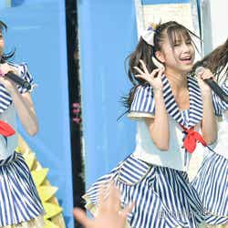 松岡は、「暑さに負けずに全力で頑張りたい」と意気込み、センターを務める「最高かよ」では、コール&レスポンスが野外の会場に響き渡る。最後に、村川が「もう1回熱くさせちゃうんですけど良いですか?」と煽り、ライブ定番の盛り上がるナンバー「メロンジュース」へ。灼熱の太陽の下、観客はタオルを手に全力で声を出し、お台場の空にタオルが舞った。