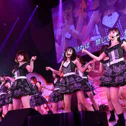 そして、おやつPITはキレのあるダンスがテーマになっており、オープニングの『涙の表面張力』から気合いの入ったパフォーマンスで会場の熱気も上昇。途中、沖縄県代表・宮里莉羅は体調不良で、熊本県代表・倉野尾成美とのユニット曲『狼とプライド』に出演できず。倉野尾は悔し涙を流しながら、急遽、服部有菜と出演することを伝えた。