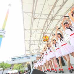 続いて、解体されることが発表された新潟の街のシンボル「レインボータワー」に感謝の気持ちを伝えるセレモニーを、篠田昭新潟市長とレインボータワーを管理・運営している新潟交通の星野社長をゲストに迎えて実施。新潟市の移住プロモーションの一環として自身もオーディションの審査員として参加した篠田市長は、アイドルとしての晴れ舞台を迎えた2期生をはじめとする研究生を祝福するとともに、新潟市と姉妹都市のロシア・ウラジオストクでミュージックビデオが撮影された4thシングル「世界の人へ」についても触れ、「まさに新潟から世界へ」とエールを送った。