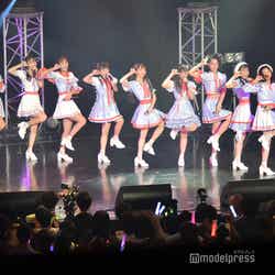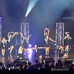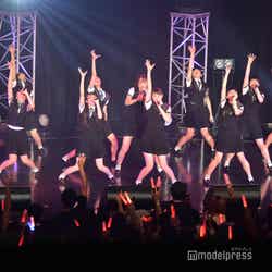 続けて、AKB48の『言い訳Maybe』から始まり、指原のグループ曲『メロンジュース』、さらに乃木坂46の『ガールズルール』、AKB48の『大声ダイヤモンド』と48&46のヒット曲をカバー。これはまだ、持ち曲も少なかった1年前の『TOKYO IDOL FESTIVAL 2017』と同じセットリスト。成長した姿を見せ、最後はもう一度『=LOVE』で幕を閉じた。(modelpress編集部)