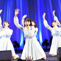 会場が和んだMCのあとは、再びユニット曲パートへ。『⾮全⼒』『僕たちはシンドバッドだ』、そして『遠距離ポスター』を初披露。⽯⽥千穂が「『遠距離ポスター』は、ずっとやりたいと思っていた曲だったのですごく嬉しかったです。みなさんどうでしたか~!」と会場に呼びかけ、今回のチャリティーコンサートツアーを振り返り、「チャリティーコンサートでは各公演1⼈1⼈ユニット曲を担当させて頂いていたんですけど、その感想を聞いてみたいと思います!」とそれぞれのメンバーにこれまでの感想を投げかけた。