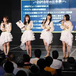 特にトークで会場を沸かした年は、今年2018年。AKB48世界選抜総選挙、中日ドラゴンズ応援大使就任・名古屋グランパス公式応援マネージャー就任といったニュースを振り返ったり、10月19日に公開されるドキュメンタリー映画「アイドル」に触れトークを繰り広げたが、須田は「何か忘れてない?私、写真集を出したんですよ~!(選抜総選挙)2位なのに写真集が売れてない!って、今すごく話題になってるんですよ~!本屋さんに山積みになっているので(写真集の私と)目があった方はよろしくお願いします」と自虐ネタで会場の笑いを誘っていた。