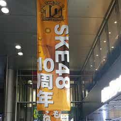 2008年7月、名古屋・栄に誕生したSKE48。10周年記念の⼀環として、SKE48劇場で3つのSKE48オリジナル公演【9月28日「制服の芽」公演・10月2日「手をつなぎながら」公演・10月3日「ラムネの飲み方」公演】をリバイバル上演した。劇場のあるSUNSHINE SAKAEでは、10周年を記念した館内装飾が施され、2日間B1と3Fに設置されたモニターで17時開演の10周年記念特別公演を生中継。独特の絵心を持ったチームS・北川愛乃のSKE48全メンバーのイラスト展示や、10周年記念グッズの販売も行われている。