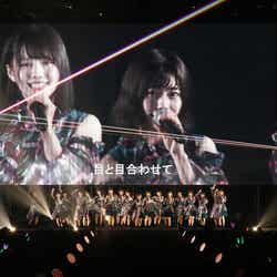 ランウェイに列をなし、飛び跳ねるメンバー。ランウェイ先端まで来て、観客をさらに盛り上げる。最後は齊藤京子と佐々木美玲が見つめ合ってハグ。フレッシュかつキュートなパフォーマンスで北九州を魅了した。