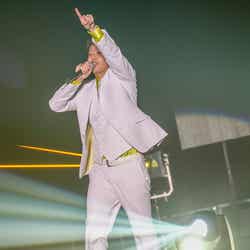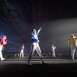 そして、白スーツに身を包んだ5人がステージに登場し、1曲目はお決まりの『レペゼン』。幕張バージョンのリリックを叩き込むと、会場の空気はもうレペゼン地球の思うがまま。“ナンバーワンかつオンリーワン”の存在感は1万5千人の前で霞むどころか、いつにも増して大きく輝いていた。また『バスターコール』では、以前コラボしていた高知県須崎市観光大使のご当地キャラ・ちぃたんが登場。天井知らずで観客のボルテージが爆上げしていく中、歌詞に合わせてレペゼン地球、ちぃたん、観客も一緒になっておどり、一体となった。