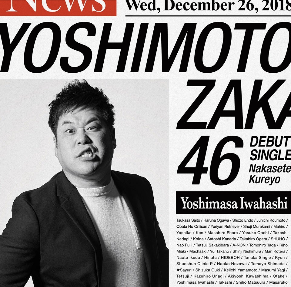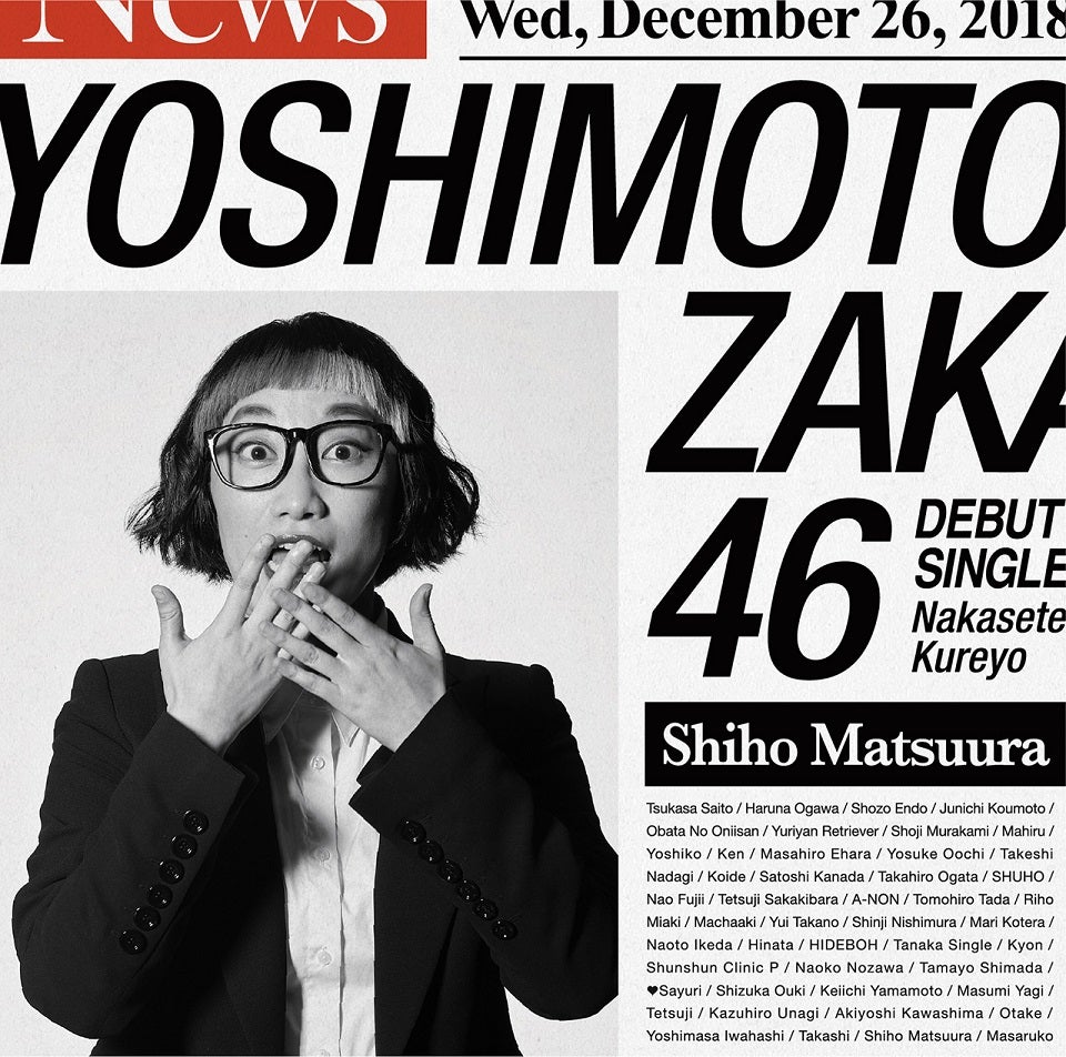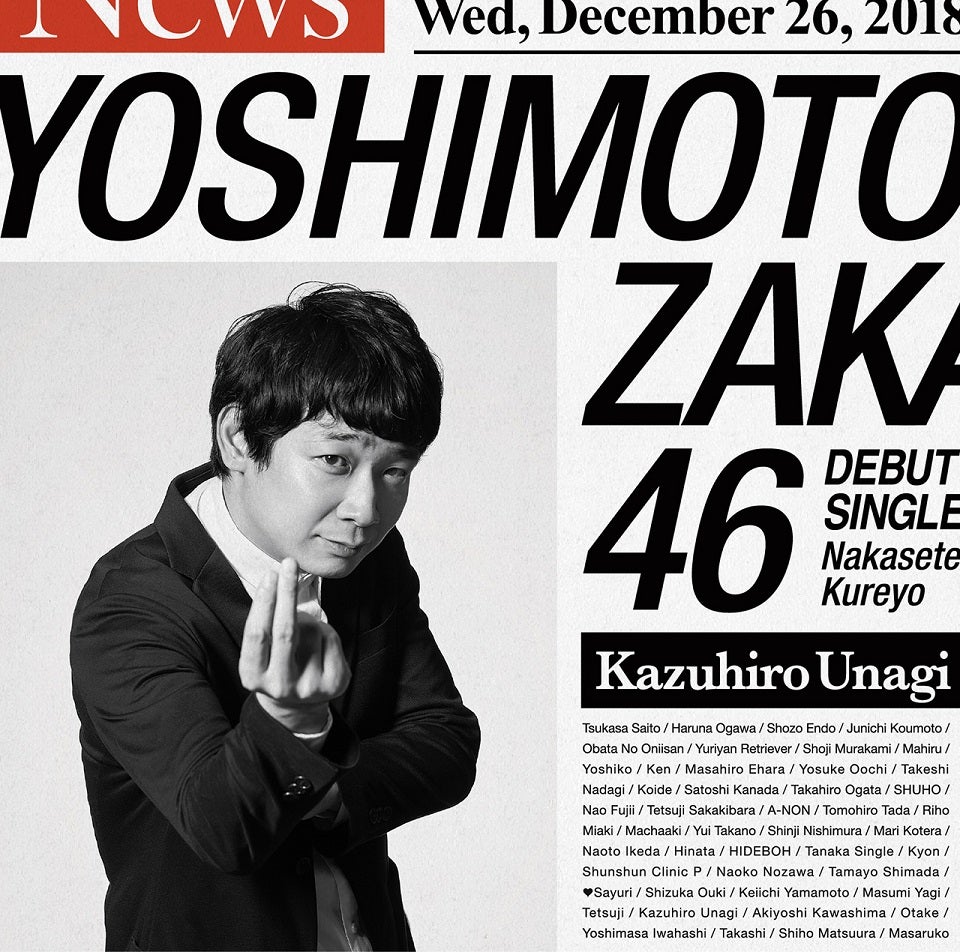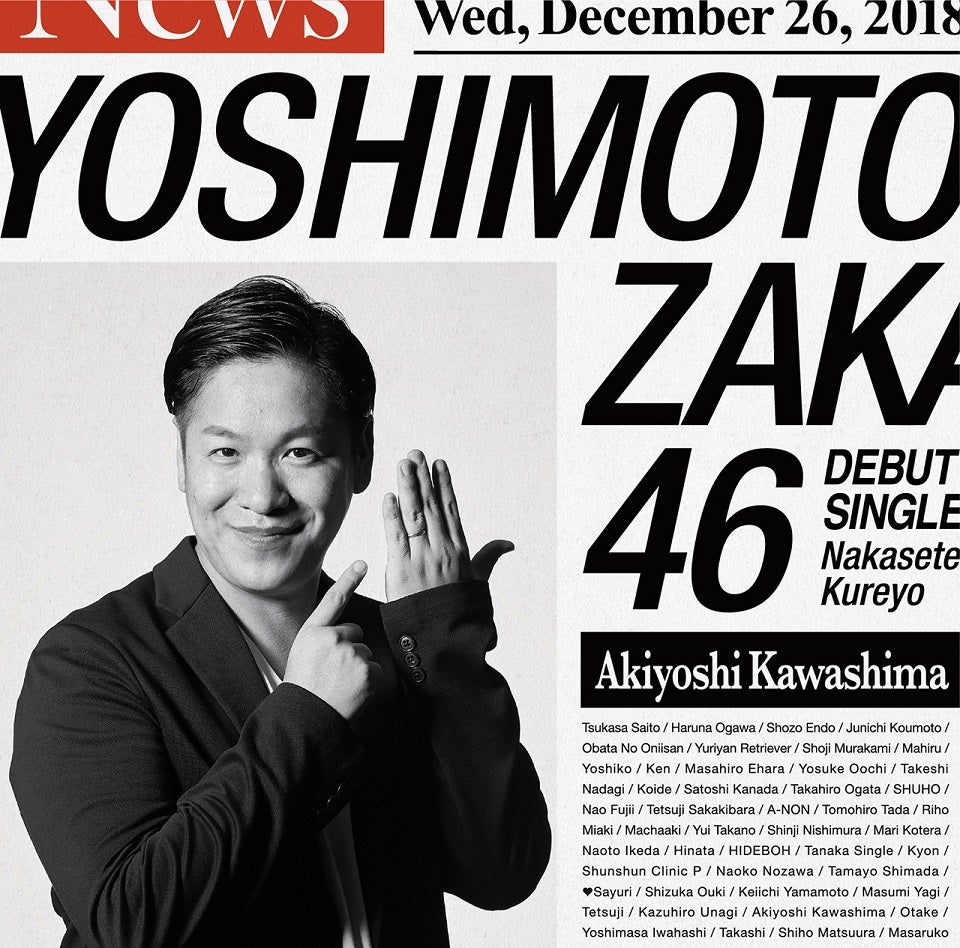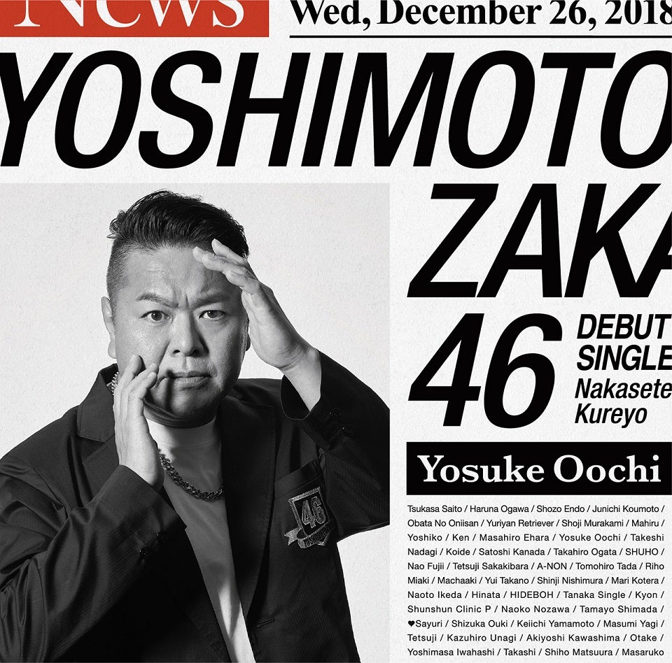 秋元康プロデュースにより、乃木坂46・欅坂46に続く坂道シリーズ第3弾として結成された吉本坂46のデビュー曲「泣かせてくれよ」(12月26日発売)のジャケット写真が完成。46人のメンバーそれぞれの顔写真がジャケットとなり、同一音源では世界最多(発売元調べ)の46品番でリリースされる。(収録曲違い、ミュージックビデオ収録の映像盤と合わせて47品番)