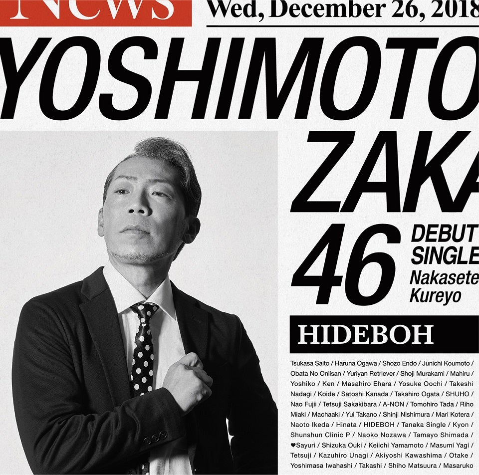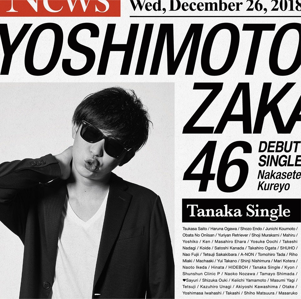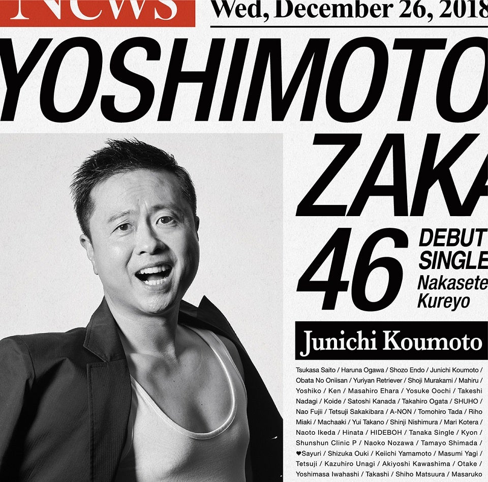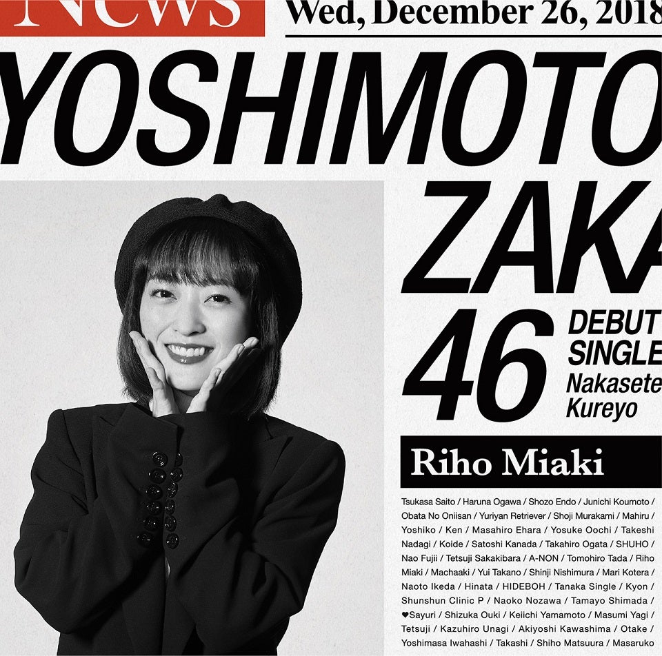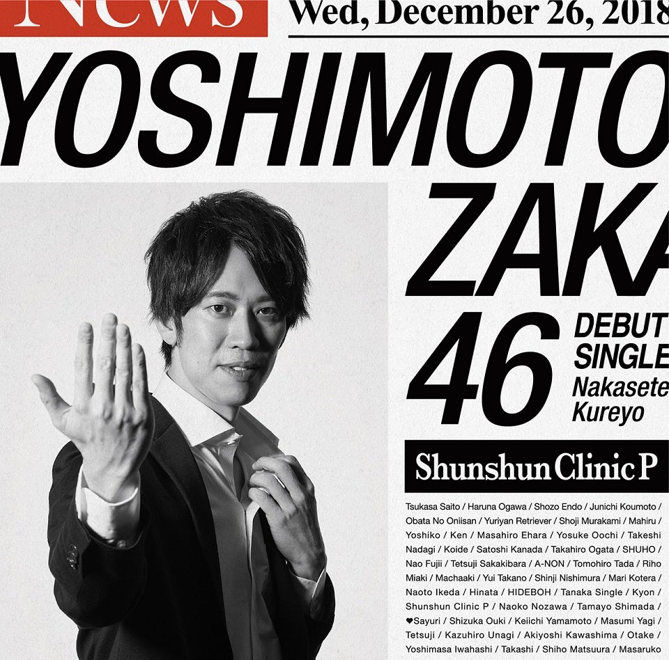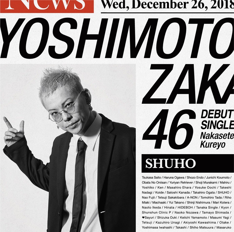 秋元康プロデュースにより、乃木坂46・欅坂46に続く坂道シリーズ第3弾として結成された吉本坂46のデビュー曲「泣かせてくれよ」(12月26日発売)のジャケット写真が完成。46人のメンバーそれぞれの顔写真がジャケットとなり、同一音源では世界最多(発売元調べ)の46品番でリリースされる。(収録曲違い、ミュージックビデオ収録の映像盤と合わせて47品番)