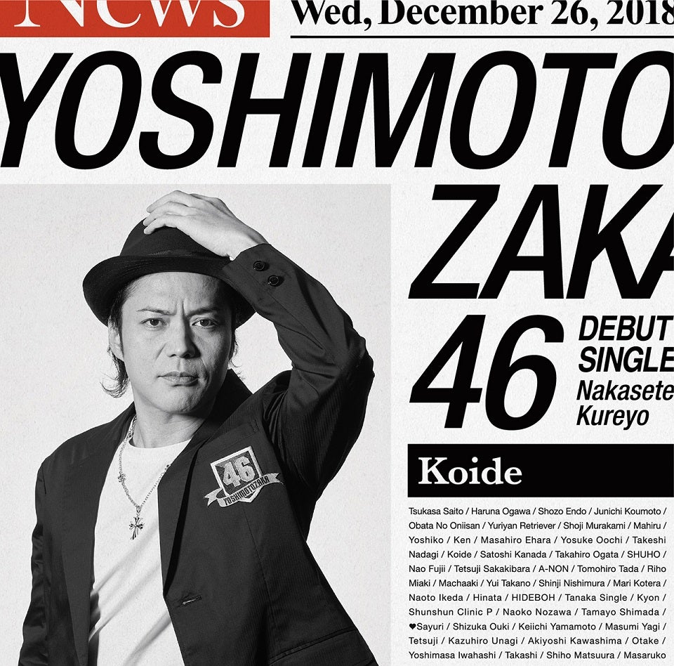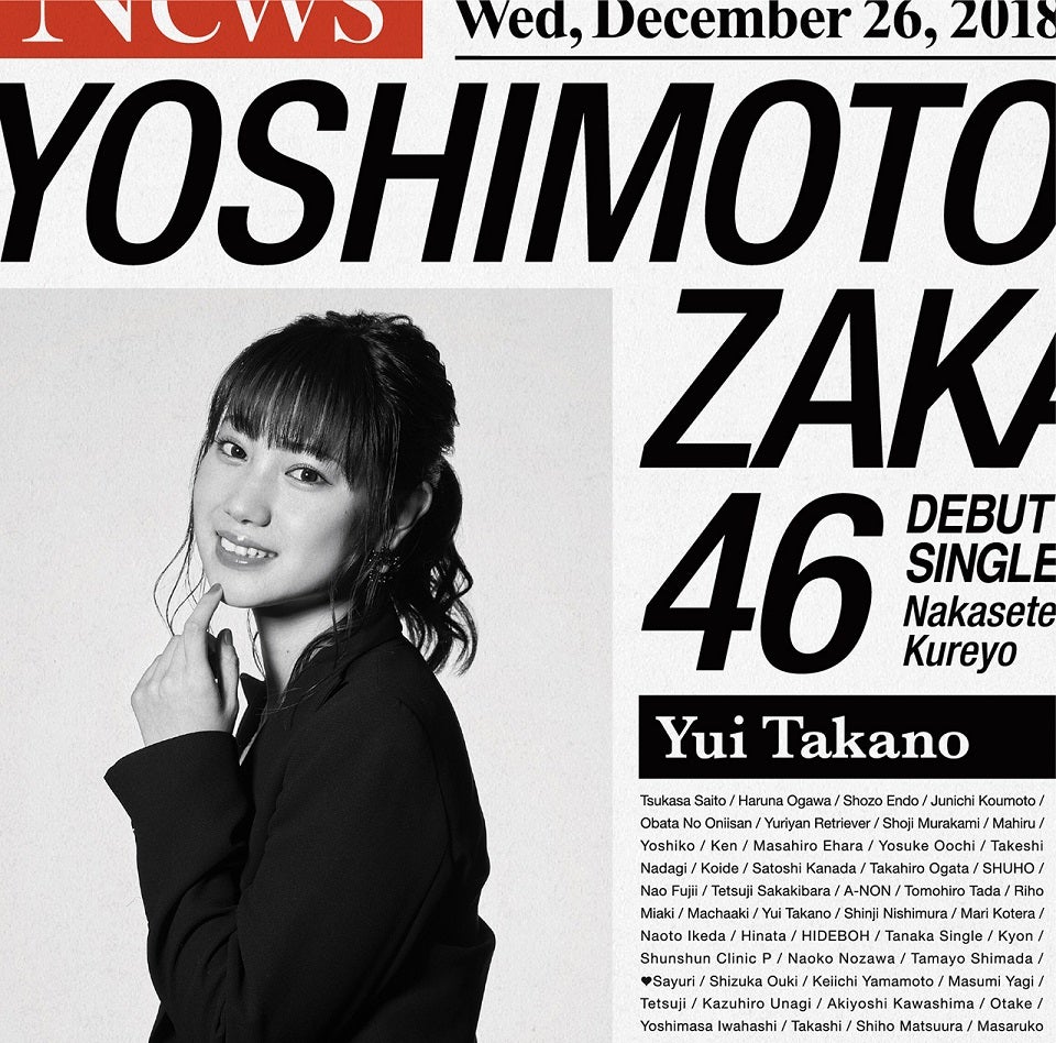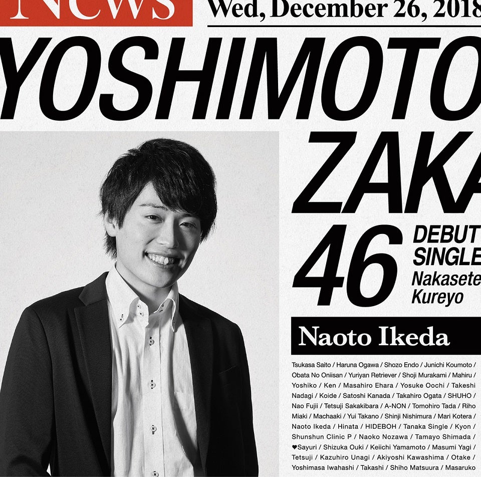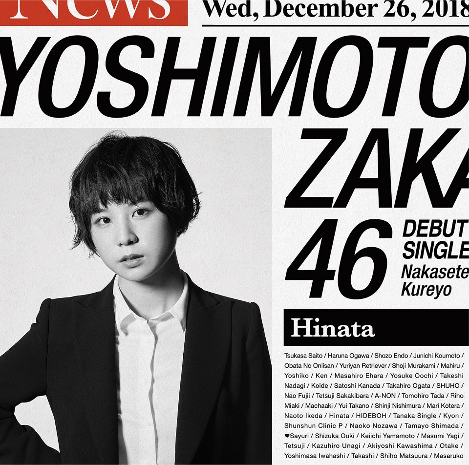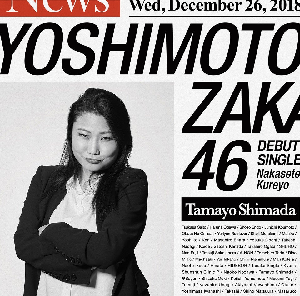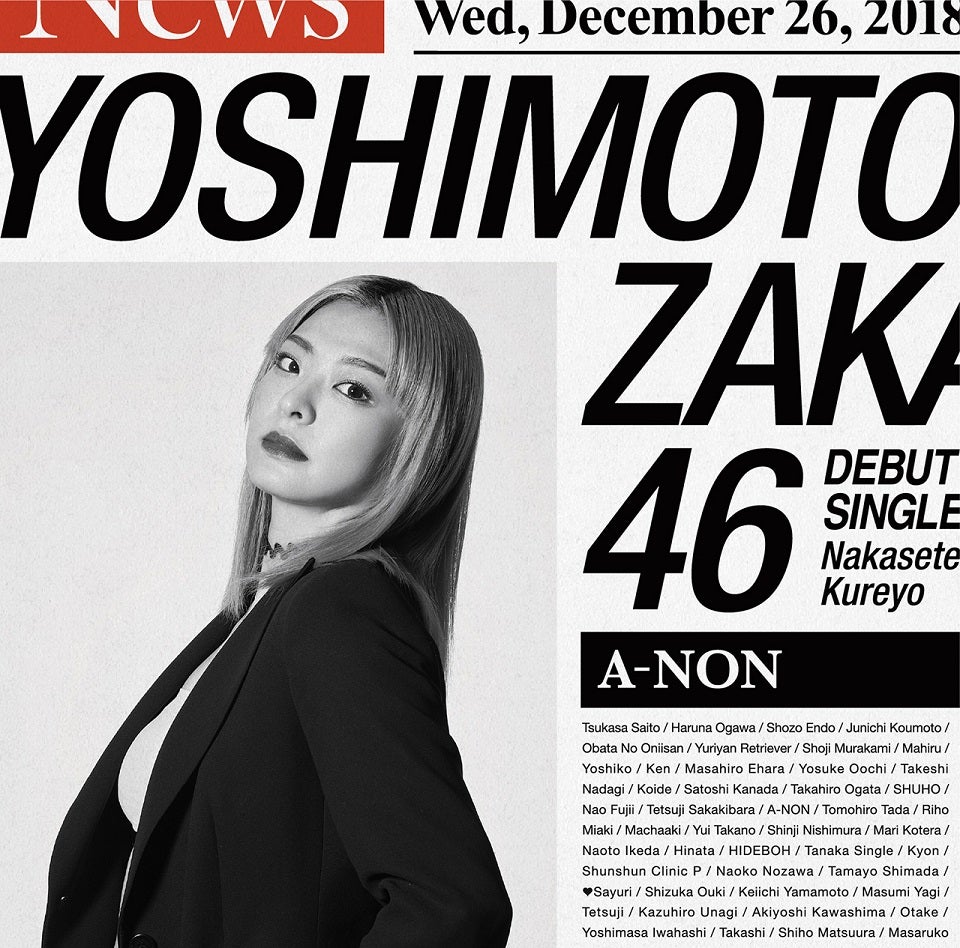 秋元康プロデュースにより、乃木坂46・欅坂46に続く坂道シリーズ第3弾として結成された吉本坂46のデビュー曲「泣かせてくれよ」(12月26日発売)のジャケット写真が完成。46人のメンバーそれぞれの顔写真がジャケットとなり、同一音源では世界最多(発売元調べ)の46品番でリリースされる。(収録曲違い、ミュージックビデオ収録の映像盤と合わせて47品番)