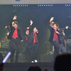 黒いスーツにハット、サングラスをかけて客席から登場した岸谷、寺脇、三浦。ステージに到着するとその場で生着替えをし、自己紹介を交えながらユーモアたっぷりにDA PUMPの『U.S.A.』を全力ダンス。観客も一緒に掛け声や振り付けをして1曲目から最高潮の盛り上がりを見せていた。続く「J-POPコーナー」では、声優界の歌姫・花澤香菜が自身の楽曲『大丈夫』を歌唱。三浦は爆風スランプの『大きな玉ねぎの下で』、神木と小関は高橋優の『福笑い』を伸びやかな歌声で披露。大原は自身の楽曲『キミを忘れないよ』をキュートかつ迫力のある声で歌い上げた。