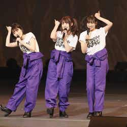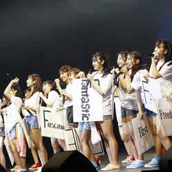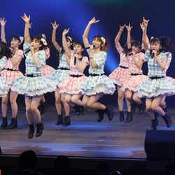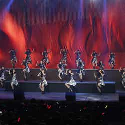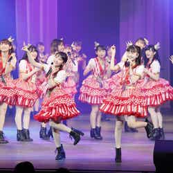 続いて、F24のメンバーがそれぞれ、ソロやセンターポジションを務める24曲メドレーをノンストップでパフォーマンス。F24最年長・栗原の『国境のない時代』からスタートしたメドレーは、のびやかな歌声で客席を魅了した坂本愛玲菜や豊永をはじめ、宮脇のソロ曲『夢でKiss me!』を美久が、指原のソロ曲『それでも好きだよ』を松岡はなが披露するなど、次々と変わる楽曲やメンバー、客席内に登場する演出に絶えず歓声があがっていた。