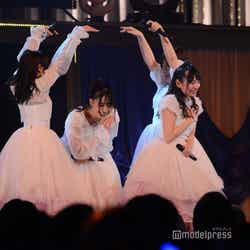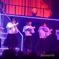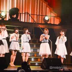 後半冒頭3曲は「座ってメンバーの声をお聴き下さい」としっとりと聴かせるバラードパートへ。ピアノの生演奏をバックに高音のハーモニーを響かせ、顔を見合わせながら一音一音丁寧に紡ぎ、また“可愛いだけじゃない”新たな一面を見せた。