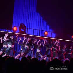 特にウエストが見える衣装で「Beginner」「RIVER」とAKB48を代表するダンスナンバーをキャプテン高橋の第一声で連続して歌った場面では、観客から「おー!」と一際大きい歓声が。畳み掛けるように史上最高難度のダンスに挑んだ最新シングル「NO WAY MAN」に続き、センターの谷口めぐを筆頭に髪を振り乱し、激しいパフォーマンスで会場を圧倒した。