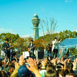 山村の「天王寺の皆さん、こんにちはflumpoolです!短い時間ですけど楽しんでってださい!」の一言からライブはスタートし、代表曲「花になれ」「two of us」2曲を披露。真冬の野外にも関わらず、短い時間ながら熱いパフォーマンスを待ちわびていたファンに届けた。