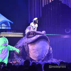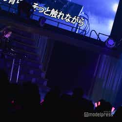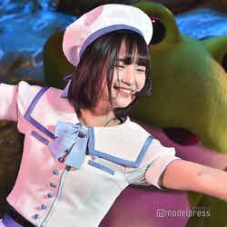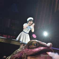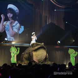 オープニングは憧れの元NMB48渡辺美優紀やダチョウ倶楽部も登場したTikTok動画16連発が流れ、自身のペットを模した大きなカエルのオブジェに乗って登場し、「永遠プレッシャー」から開幕。「意外にマンゴー」「シンクロときめき」「絶滅黒髪少女」と一気にパフォーマンスし、キュートからセクシーな魅力まで見せ尽くした。