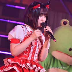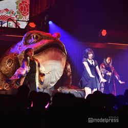ピンクのペンライトにうまった会場を見ながら、「よかったです、こんないっぱい人が来てくれて」と笑顔で話した矢作は「憧れのみるきーさんにやっと会えました!」と報告。カエルは遠方から運んできたといい、「どうですか?すごい高いみたいですよ(笑)」と明かした。