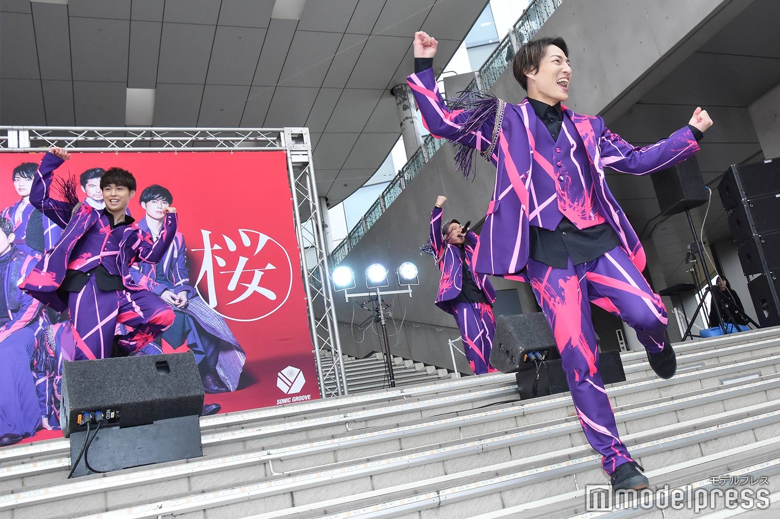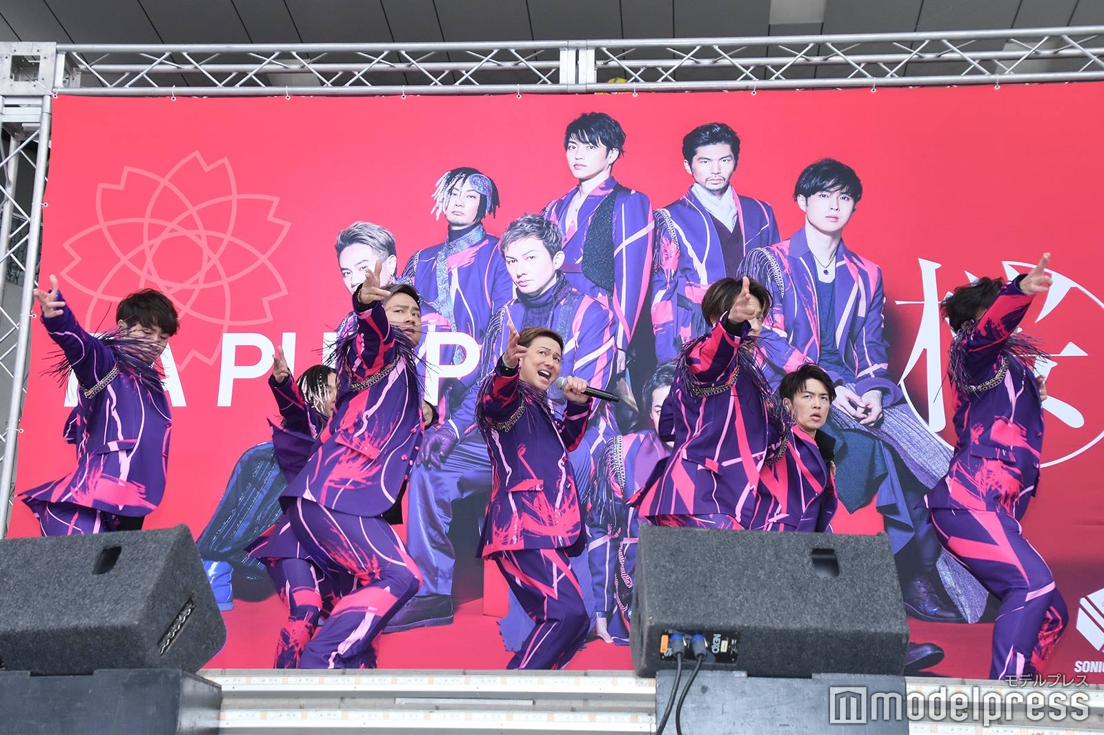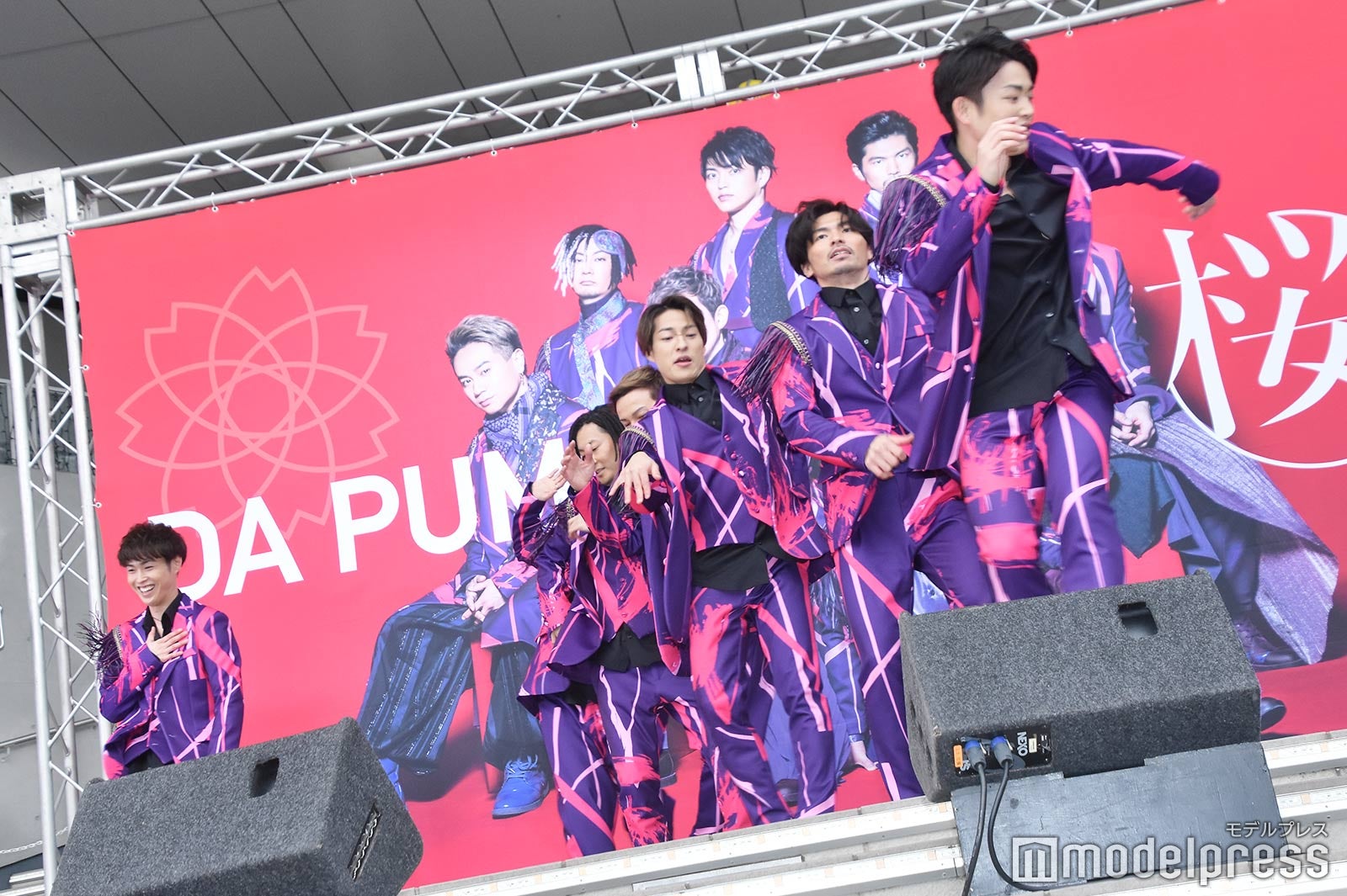 7人組ダンス&ヴォーカルグループ・DA PUMPが6日、都内で同日発売のシングル「桜」リリース記念イベントを開催。社会現象となった大ヒット曲「U.S.A.」以来、9ヶ月ぶりとなる新曲をファン3000人の前で歌唱した。