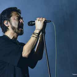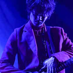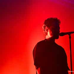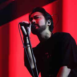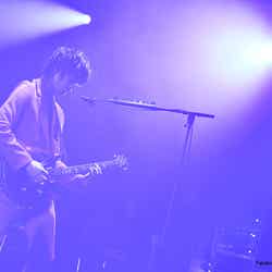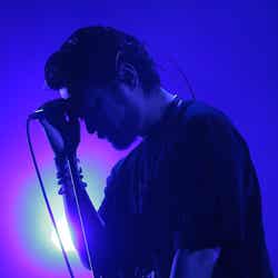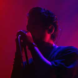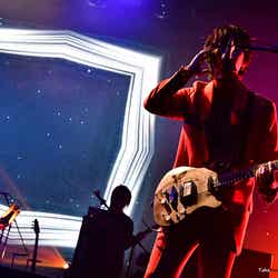 続く2ndシングル「zealot」では、破壊力のある重低音とノイジーなギター、官能的なボーカルでフロアを圧倒。バックスクリーンに映し出される幻想的な月を背に、音の波に没入するASAHIと、眉間にシワを寄せて恍惚の表情で天を仰ぐGO、そして祈るようにマイクを抱えるTAKAYUKIの姿が印象的だった。ライブ中盤に披露した「チート」「tut-tut」では、暴力的なベース音にねっとり絡む声と意味深な歌詞で場内の空気を支配し、「amber1800」では激情的かつメランコリックなギターフレーズ、そしてTAKAYUKIとGOによる美しいユニゾンで観客を魅了。
