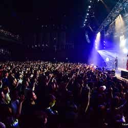 TAKAYUKIはまっすぐに観客を見据え、ASAHIは体を揺らし両手でクラップ。全身赤で統一したGOは、両手を広げて歓声を全身で浴び、「Are You Ready?」と会場を煽る。ヒートアップする会場に「まだまだこれから」と言わんばかりのニヒルな笑みを浮かべ、ギターを掻き鳴らした。