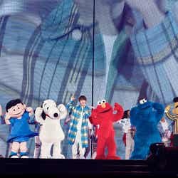 そして、「The Days」では、MVで共演しているユニバーサル・スタジオ・ジャパンの人気キャラクターのピーナッツとセサミストリートとともにトロッコで登場。Nissyのソロ活動5周年を祝うかのようにスヌーピーやエルモ達は、Nissyとアリーナ外周を大行進し、ステージに集結した。