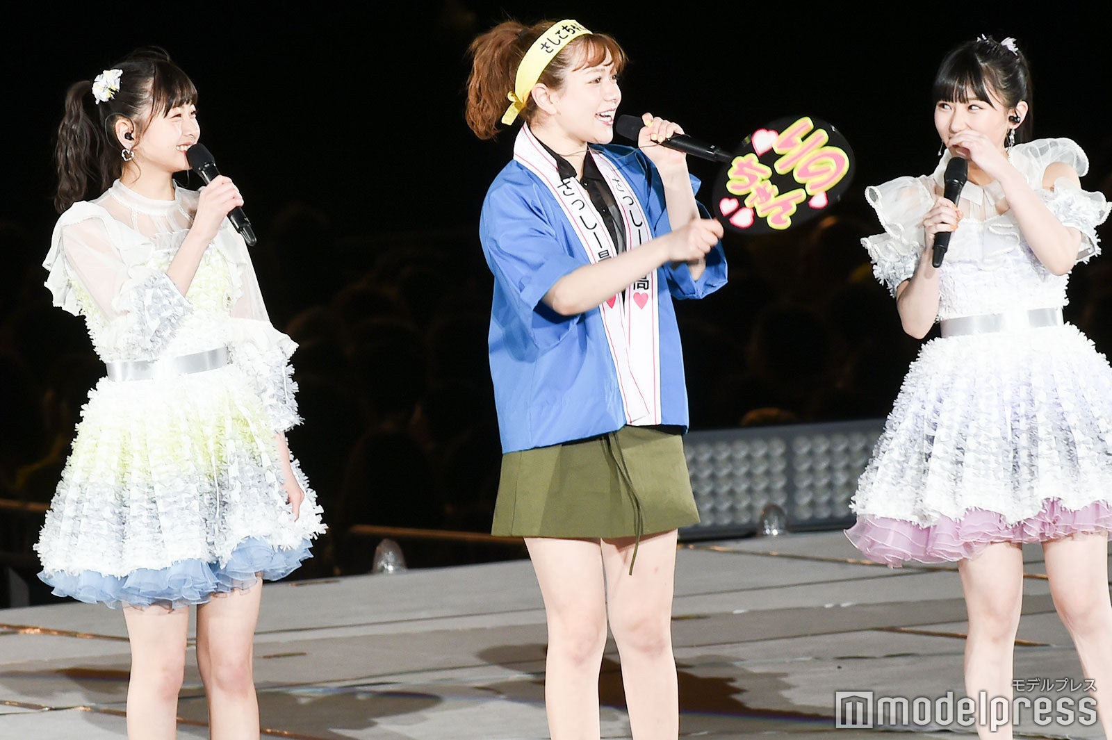 ソロ曲のコーナーでは、お腹をあらわにした色っぽ衣装に身を包んだ指原が松岡菜摘、森保まどかと共にセンターステージに再登場。熱くセクシーに「愛しきナターシャ」を披露した。