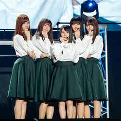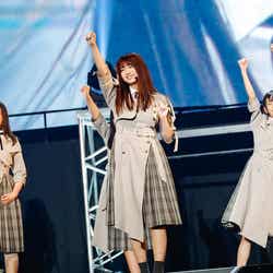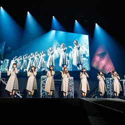 森田ひかるがセンターに立った『アンビバレント』では、パワフルにステージを躍動する彼女たちに盛大なコールが送られる。その勢いのまま本編ラストの『風に吹かれても』になだれ込むと、山崎天がセンターポジションへ。花道に並んだメンバーははつらつとした笑顔でステップを踏み、盛り上がりを最高潮へと導いた。松田里奈は「会場の皆さんとの一体感がすごくて、一緒に楽しめているという感じが嬉しかったです」と笑顔。井上梨名は「『Nobody』は大人っぽい曲なので、どうやったら大人っぽくなれるか研究してきました」と胸を張った。