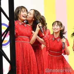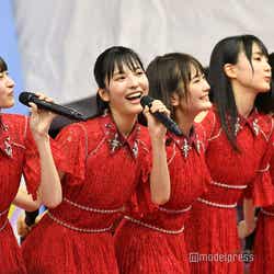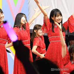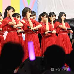 終盤は「ジコチューで行こう!」では、センターの清宮レイが“だるまさんが転んだ”を始めると、田村真佑が清宮の頬にキス。最後は掛橋沙耶香をセンターにした「裸足でSummer」で会場と一体になり、田村の「きょうは本当に暑い中、見に来てくれてありがとうございました!」という声で、堂々とした初ステージを終えた。