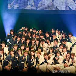 2期生は初出演となり、「こんなに大きなステージでパフォーマンスできてめっちゃ嬉しいです!」と喜びをあらわに。最後は「眩しすぎる流れ星」「ラスアイ、よろしく」をファミリー全員で歌唱。46人がステージの端から端まで広がりパフォーマンスする姿は圧巻で、会場も熱い盛り上がりを見せた。
