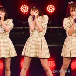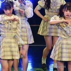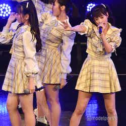 そのまま「いらないツインテール」へ。ツインテールがトレードマークの齋藤樹愛羅、齊藤なぎさのコンビがWセンターに立つ、キュートなイメージを覆すロックテイストの楽曲で、2人が拡声器を使って強い言葉で煽ると、会場のテンションもアップ。