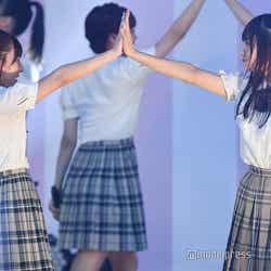 5日に「TOKYO IDOL FESTIVAL 2019」にて初ステージを踏んだばかりの≠ME。2度目の舞台が、先輩の=LOVEとの初の合同コンサートとなり、両グループのファンが野外の会場に集まった。日が少しずつ落ち始めた午後6時、24人がステージに現れると、会場の熱気は一気に上昇。2グループ合同でオープニングナンバーにふさわしい「スタート!」で開幕し、「部活中に目が合うなって思ってたんだ」、「探せ ダイヤモンドリリー」と3曲続けて披露。貫禄のパフォーマンスをみせる=LOVEの12人、そこに追いつこうとフレッシュにくらいつく≠MEの12人、それぞれの魅力が合わさり、24人での圧巻のステージとなった。