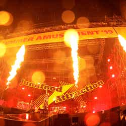 次に、約25mに及ぶ花道を歩いてメインステージへと戻った彼らは、この日のために配信リリースされ、ダンス動画も話題となった新曲「NOTFLUNKY」でスラッシャーと共に踊る。また、BiSHのアイナ・ジ・エンドとコラボした「SING-A-LONG」や田淵智也(UNISON SQUARE GARDEN)の楽曲提供で話題となった「ビリビリ☆ルールブック」、ライブの定番曲「愛の導火線」、「JUMPer」を大きな火柱 が燃え盛る中で、熱くパフォーマンス。盛り上がる中、一気にクライマックスへ向かう。