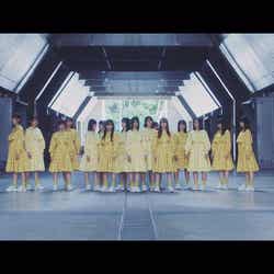 朝からかなりの暑さの中、幕張メッセという近代的な建築物の屋内外を使い、お揃いの黄色い衣装を身にまとって撮影。特にメンバー自身も楽しんでパフォーマンスをした、星空をイメージした背景でのダンスシーンが印象的で、日向坂らしい可愛さの中にも、クールさや切なさが感じられる作品に仕上がった。なお、監督は2ndシングル「ドレミソラシド」収録の『キツネ』MVを担当した荒伊玖磨氏が担当した。(modelpress編集部)