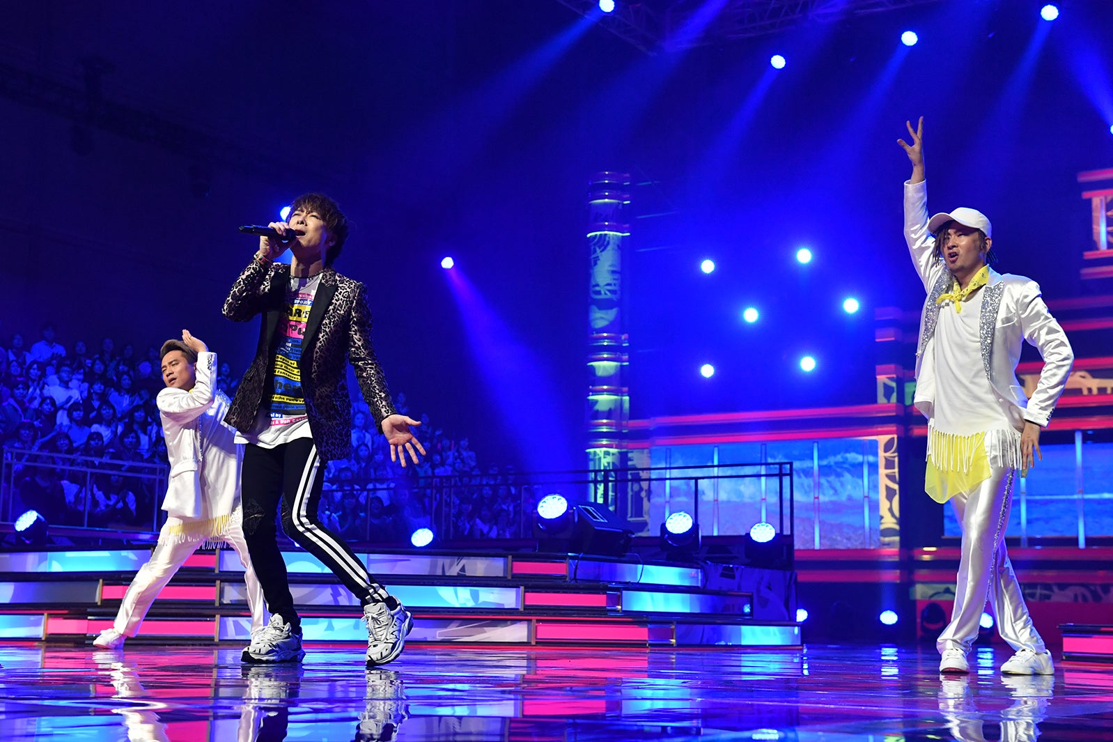 毎回パフォーマンスで沸かせる貴水博之はISSAと衣装を揃え、DA PUMPメンバー、AKB48柏木由紀、峯岸みなみをバックダンサーに「U.S.A.」を、さらにサザンオールスターズ「HOTEL PACIFIC」をノリノリで披露。顔芸も炸裂し、今回もMC中居が爆笑したステージに注目。