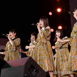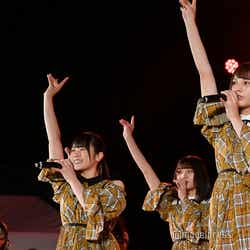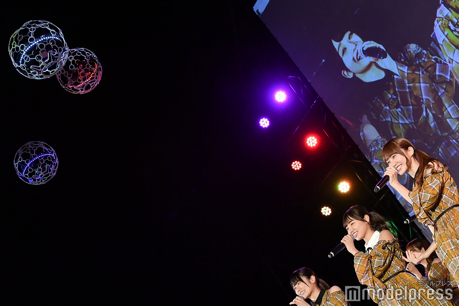 また、今日のために西沢が作ったきたリミックスについて「最高でした」「カッコよかったです」とメンバーは嬉しそうな表情。西沢も「さっきTwitter見たんですけど『今日のドローンの、神ライブ決定!』って」と喜んでいた。その後、改めて「誰よりも高く跳べ!」からステージを再開し、「ハッピーオーラ」「こんなに好きになっちゃっていいの?」「ドレミソラシド」をリミックスver.で立て続けに披露。途中ステージから色とりどりのドローンが飛び立ち、メンバーの上を漂うこの日ならではの演出もあり、まだオープニングにも関わらず、会場のボルテージを一気にあげた。