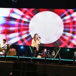 そして「今日出ているアーティストみんな汗を振りまきながら音鳴らしているんですよ。だからみんなも騒ごうよ?」と煽って「いいですか?声出せよー!」という掛け声でリアドがドラムでテンポを刻み、川上がワンフレーズ歌うと、会場全体がシンガロングして始まった「Adventure」。途中では、「晴れ渡る8月の亜麻色に染まった“横浜”は!」と歌詞を替えて、会場を沸かせた。ラストには、自然と会場から歌声が響き、一体になっていく様子に、川上はニカッと笑顔をみせ、拳を突き上げて歌い上げた。