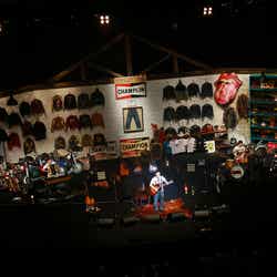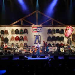 セットには、デニム、革ジャン、ハーレーなど私物のヴィンテージコレクションがずらりと並び、オールド・アメリカンな雰囲気。草なぎのプライベート空間に招き入れられたようで、幕が下りた瞬間には観客からどっと歓声があがった。「これ全部私物。ヤンチェ(JANTJE_ONTEMBAAR)のコートもあるし、吾郎さんに昔もらったTシャツも」と香取慎吾、稲垣吾郎の縁のアイテムも配置されていた。