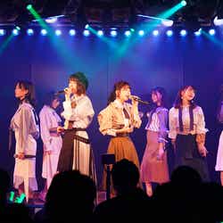 楽器演奏を得意とするメンバーで構成されたバンドユニットは、⿊須遥⾹(ベース)・齋藤陽菜(ギター)・⾼岡薫(バイオリン)・髙橋彩⾳(キーボード)・向井地(ギター)・吉橋柚花(ドラム)が各々楽しそうに演奏しながら『僕たちの地球』を披露。あたかも本当に演奏しているかのように⾒えたバンド演奏でしたが、曲終わりのMCで、実際に楽器演奏できるメンバーで結成されたものの、この曲の本家ユニット“kiss の天ぷら”同様に全員がエア演奏だったことをカミングアウトし、ファンの笑いを誘った。