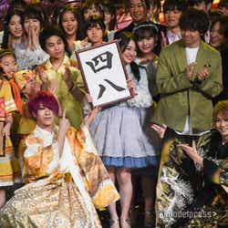 それに続いて、楽曲にのせて、AKB48が「四八」、氷川きよしが「氷川」、Foorinが「風鈴」、純烈は「銭湯」、DA PUMP「米国」、Little Glee Monsterが「怪物」を掲げ、笑いを誘う場面も。