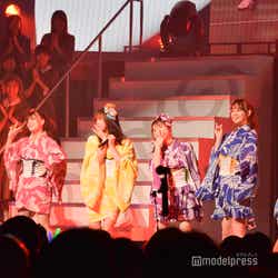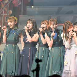 MCではひな壇にいた村重杏奈が「今日、出る曲1曲もない!」と衝撃の告白をして会場を笑いに包み込む場面も。確かによく見ると1人だけ周りのメンバーと違う衣装で、冒頭からことあるごとに出演メンバーの隣で、さながら持ち曲のように踊り狂い、周りのメンバーの爆笑を誘っていた。
