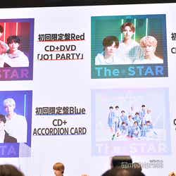 発表会の司会はJO1とも共演経験が多いお笑いコンビのかまいたち(山内健司・濱家隆一)が担当。新ビジュアルとジャケット写真も公開され、メンバーはブルーを基調とした新衣装で出席した。