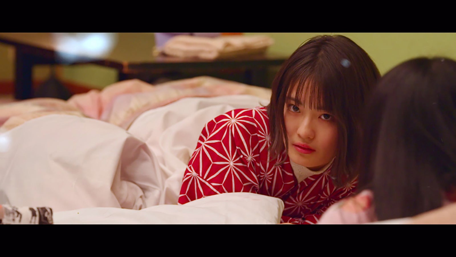 そして昨年10月上旬に静岡県伊豆にて撮影された『Out of the blue』のMV。MVの撮影前夜に、宿泊先でメンバー同士の枕投げが始まってしまった!?という内容になっている。センターを務める早川聖来をはじめ、枕投げ自体を本気でやっており、意外と豪速球の枕が行き来。その為、何人かは翌日肩が筋肉痛になったというエピソードも。